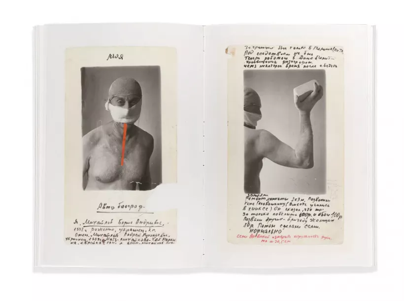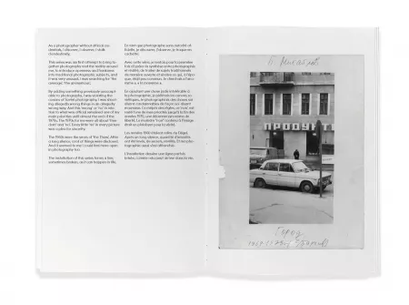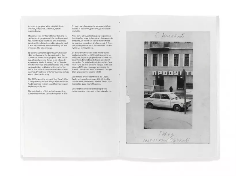 A second booklet with essays contributed by Simon Baker (Director of MEP, Paris), Laurie Hurwitz (Curator of the exhibition), and artist Leigh Ledare (artist and friend of the Mikhailovs) complements the main book. Included in this are also translations for the series Viscidity and Unfinished Dissertation.