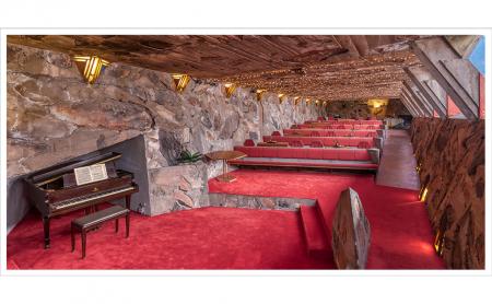 An extraordinary compound of buildings that complements the cactus-studded environs and mountain backdrop of the Scottsdale desert in Arizona, Taliesin West is Wright’s ode to desert living and one of his greatest and most visited venues. Here, amidst palo verde trees and coyotes, the visitor finds an oasis of sparkling pools and low-slung modern buildings that are uniquely suited to the site — indeed a veritable paradise that seems to have emerged from the wilderness. The expression of profound vision and the product of determination, artistry, and imagination, here Wright brought forth an organic masterpiece from the elements of the earth.