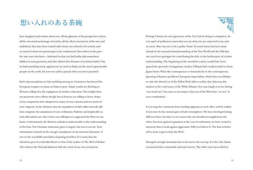 ‘Tea began as a medicine and grew into a beverage,’ are the opening words of Okakura Kakuzō’s The Book of Tea, written in English in 1906 for a Western audience. The book is a long essay celebrating the secular art of the Japanese tea ceremony and linking its importance with Zen Buddhism and Taoism. It is both about cultural life, aesthetics and philosophy, emphasising how Teaism – a term Kakuzō coined – taught the Japanese many things; most importantly, simplicity, which can be seen in Japanese art and architecture. Looking back at the evolution of the Japanese tea ceremony, Kakuzō argues that Teaism, in itself, is one of the profound universal remedies that two parties could sit down to. Where the West had scoffed at Eastern religion and morals, it held Eastern tea ceremonies in high regard.