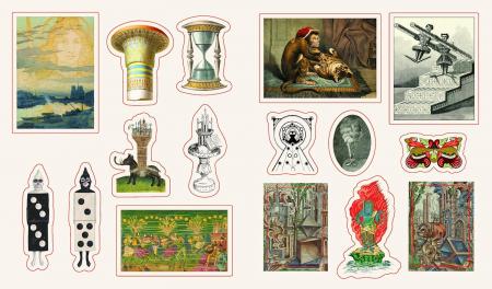 The Sticker Treasury of the Mystical and Esoteric is a deluxe compendium of more than 800 vintage-inspired stickers, perfect for embellishing any creative project you have on the go, be it scrapbooking, junk journaling, collaging, gift wrapping, or merely personalizing any page.