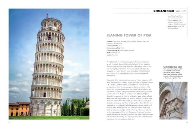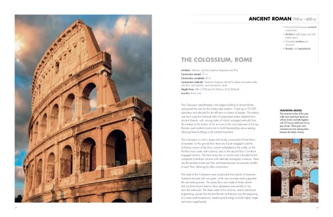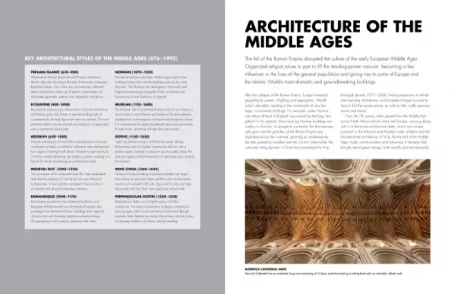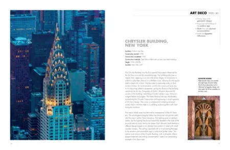 Arranged chronologically, over two spreads a major building is used to illustrate a particular style – King’s College Chapel, Cambridge for Perpendicular Gothic, the Palace of Versailles for Baroque, the Chrysler Building for Art Deco. Each entry is illustrated with both general view photographs and close-ups, accompanied by accessible text explaining the major features of the style. Each chapter also offers a general cultural background to the major architectural movements, putting them into historical context.