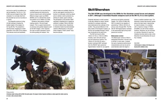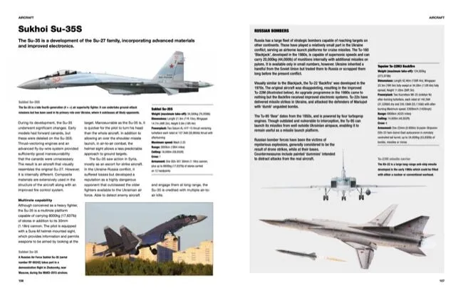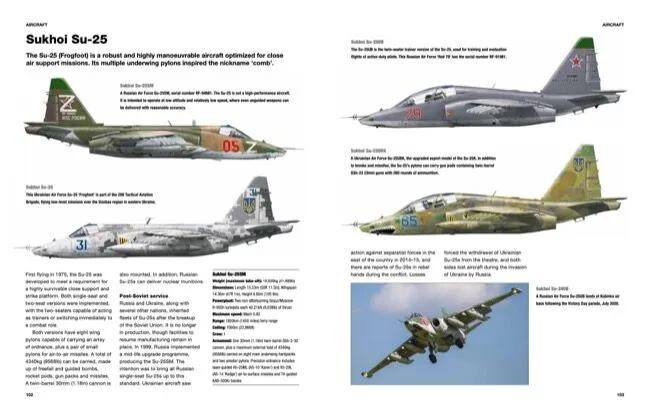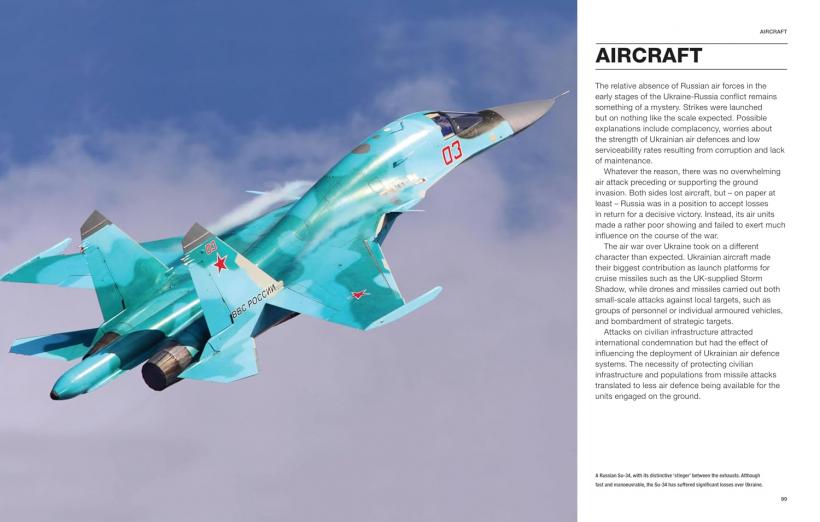 Посібник ілюстровано точними зображеннями винищувачів, бомбардувальників, ударних гелікоптерів, танків, БТРів, артилерійських систем, ракетних пускових установок та безпілотних літальних апаратів з Росії, НАТО, Туреччини та інших джерел. Ілюстрована понад 100 детальними ілюстраціями, книга Aircraft, Tanks & Artillery of the Ukraine War є важливим довідником для тих, хто хоче зрозуміти війну, що ведеться в сучасній Європі.