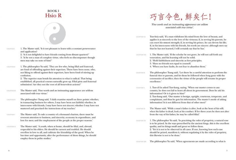 «Аналекти» Конфуція були однією з найбільш читаних та вивчених книг у Китаї протягом останніх 2000 років і продовжують мати значний вплив на думку та цінності й сьогодні. Його слова значною мірою стосуються етики, моралі в сім'ї, шлюбі та уряді, соціальних стосунків, справедливості та щирості, доблесті та чесноти. Але незалежно від того, чи вважаєте ви це високою філософією, чи самодопомогою для всіх віків, чи цікавитеся ви китайською культурою чи лідерством, чи займає вас духовність чи успіх, Конфуцій має мудрі та доступні слова про все це.