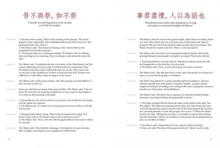 Це повне видання «Аналектів», яке складається з 20 книг коротких уривків з творів Конфуція та його учнів, було перекладено Джеймсом Легге та представлено з новим вступом Джеймса Траппа.