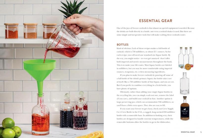 Організований за духом, журнал Freezer Cocktails також охоплює науку, що стоїть за простотою, зокрема, як змінюється точка замерзання алкоголю залежно від об’єму доданої води, соку та/або підсолоджувача, а також як використовувати цю інформацію для створення власних рецептів.