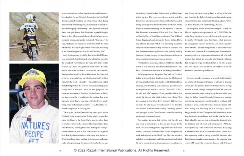 Джонсон почав досліджувати свою пристрасть до мистецтва та фотографії, наймаючи таких фотографів, як Ендрю Мур та Парі Дукович, для зйомки за лаштунками багатьох своїх гонок. З передмовою від легенди спорту Майкла Джордана, цей том містить фотографії з раннього життя Джонсона та початку його блискучої кар'єри, а також захопливі знімки гонок від відомих фотографів Себастьяна Кіма та Пеггі Сіроти, а також знімки, зроблені самим Джонсоном. Одкровенна, натхненна та справді захоплива, історія Джонсона сподобається ентузіастам NASCAR, любителям спорту, шанувальникам фотографії та всім, хто цікавиться історією дитячої мрії, яка здійснилася.