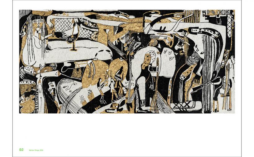 Майбутнє (і минуле) жіноче: химерні, часто жартівливі картини Саммер Віт у насичених коштовних тонах, що перериваються яскравими неоновими вогнями, кишать фантастичними фігурами, що увічнюють племена жінок, які полюють, співпрацюють, святкують і зрештою замінюють тисячоліття зображень чоловіків-правителів та воїнів.