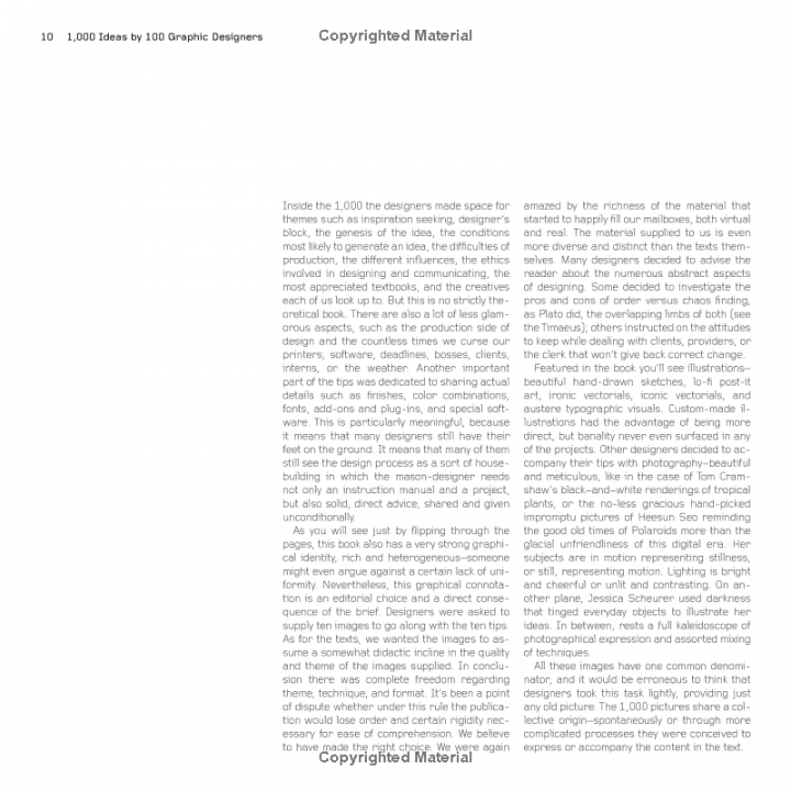 1000 Tips by 100 Graphic Designers showcases work from a selection of today’s best designers while providing precious tips to the graphic design enthusiast. The book delivers a behind-the-scenes depiction of every project, providing a virtual instruction manual to the finished project and its creative, productive, and organizational framework. The 1000 suggestions vary in form and function, from the theoretical to the practical, giving insights on new materials, techniques, and tools.