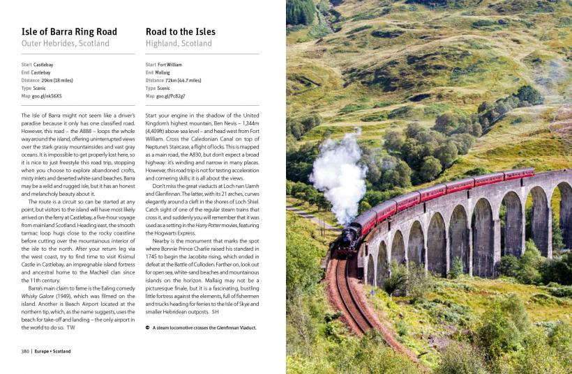The wide-ranging, carefully chosen featured road trips vary in length and severity, from an epic tour on Ireland's Wild Atlantic Way to a short blast around Monaco's famous F1 street circuit. The hand-picked drives cover mountain passes, coastal highways, motorsport circuits and trips inspired by music, film and literature. Must-see stop-offs and detours along the journey's route are included. Every page provides a wealth of information to assist in planning a drive, including overall distance, start and finish points, and links to specially commissioned digital route maps.