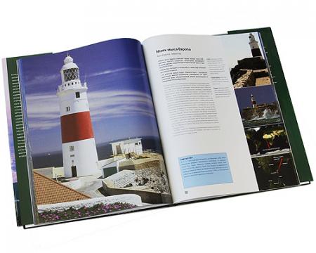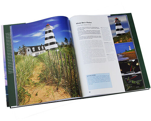На иллюстрациях изображены все основные типы маяков, установленных на самых живописных берегах мира, такие как маяк мыса Гаттерас в американском штате Каролина, передвинутый на 875 м в глубь суши из-за размываемого берега, или французский маяк Кордуан с королевскими апартаментами, или массивный финский маяк Бенгтскяр.