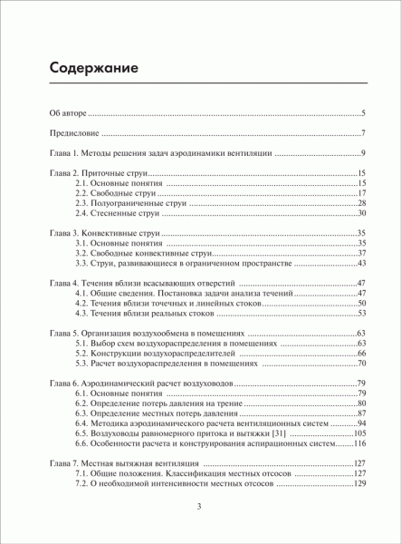 Книга «Аэродинамика вентиляции» посвящена аэродинамическим аспектам расчета элементов и систем вентиляции. Рассмотрены законы формирования приточных и тепловых струй, течений вблизи всасывающих отверстий, движения воздушных масс в вентилируемых помещениях. Освещены проблемы расчета вентиляционных сетей, местных систем вентиляции, воздушных завес естественных систем вентиляции жилых зданий.