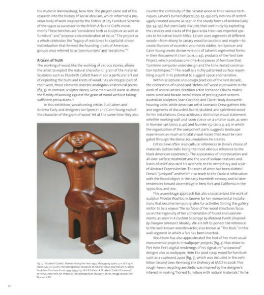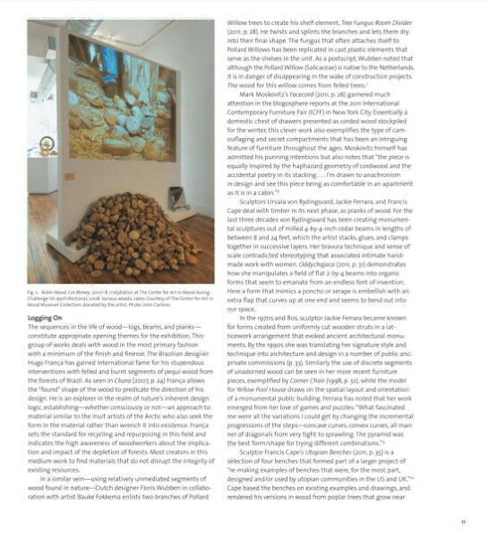 Focusing on some of the most interesting conceptual technical trends in wood working today, Against the Grain includes approximately 65 vessels, sculptures, furniture, and installations, created since 2000, which provocatively defy categories and celebrate the visual dynamics of wood. The book demonstrates how contemporary creators have engaged the medium of wood in strategies that might be described as “postmodern,” employing mimicry, assemblage, virtuosity, and whimsy (with a serious purpose). Environmental issues also are prominently addressed. Artists represented include Derek Bencomo, Gary Carsley, Hunt Clark, Piet Hein Eek, David Ellsworth, Sebastian Errazuriz, Bud Latven, Mark Lindquist, Thomas Loeser, Sarah Oppenheimer, William Pope.L, Martin Puryear, Marc Andre Robinson, Laurel Roth, Betye Saar, Courtney Smith, Elisa Strozyk, Alison Elizabeth Taylor, and Ursula von Rydingsvard. Focusing on some of the most interesting conceptual technical trends in wood working today, Against the Grain includes approximately 65 vessels, sculptures, furniture, and installations, created since 2000, which provocatively defy categories and celebrate the visual dynamics of wood. The book demonstrates how contemporary creators have engaged the medium of wood in strategies that might be described as “postmodern,” employing mimicry, assemblage, virtuosity, and whimsy (with a serious purpose). Environmental issues also are prominently addressed. Artists represented include Derek Bencomo, Gary Carsley, Hunt Clark, Piet Hein Eek, David Ellsworth, Sebastian Errazuriz, Bud Latven, Mark Lindquist, Thomas Loeser, Sarah Oppenheimer, William Pope.L, Martin Puryear, Marc Andre Robinson, Laurel Roth, Betye Saar, Courtney Smith, Elisa Strozyk, Alison Elizabeth Taylor, and Ursula von Rydingsvard.