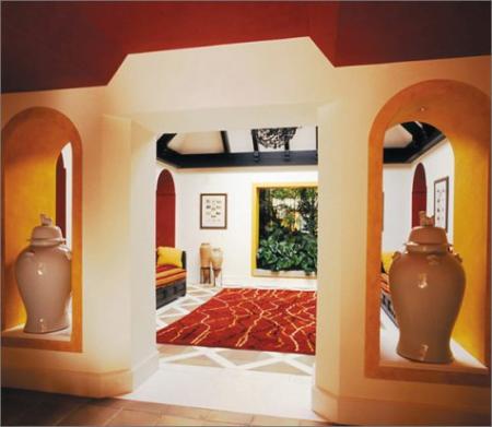 We are also brought to a ranch in the deserts of New Mexico and to the ocean-side hills of Long Islands elegant Hamptons. Here we find Pintos cultivated but decidedly eclectic approach to design - an indirect result, perhaps, of his having grown up in post-colonial Casablanca. His roots are Moroccan - under the certain influence of Paris. Of course, his work is more than this: it is an amalgam of British chic, French elegance, and American rationalism; it is a manipulation of classical styles with a twist; it is frequently a brilliantly daring tendency to juxtaposition and apparent paradox in which a surrealistic painting by Magritte might hang below a Neoclassical bust - all of this ultimately resounding in an affirmation of Alberto Pinto as the interior designer and decorator of choice.