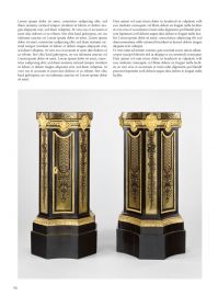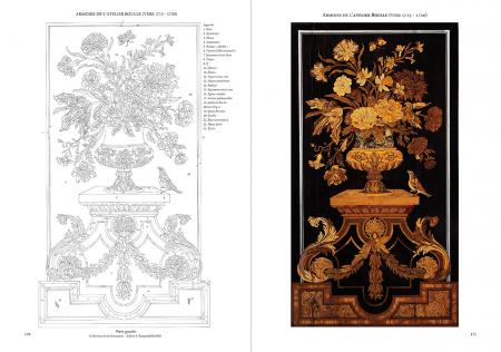 Il nous laissa des meubles magnifiques, mais aussi de plus petits objets : écritoires, consoles, horloges, coffrets et de nombreux dessins manuscrits ou gravés que l’auteur se fait un plaisir de présenter à travers de nombreuses photographies et de commenter en précisant leur histoire, les techniques utilisées, les essences et matières mises en oeuvre. À l’occasion il les accompagne de leur relevé, et pour mieux rendre compte des nombreux détails, certains dessins de grandes dimensions sont présentés sur des planches dépliantes.