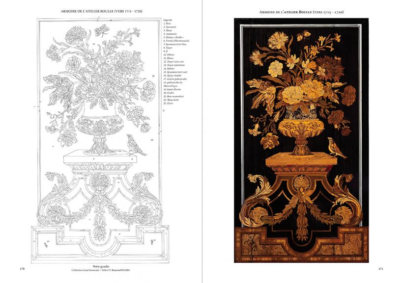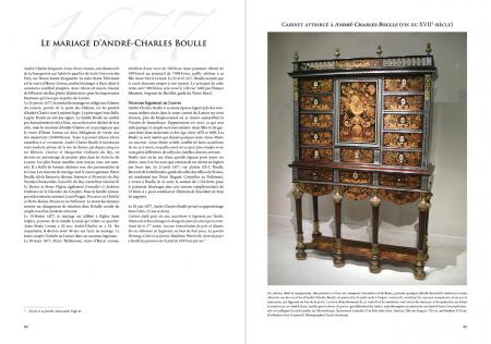 Le texte est émaillé de nombreuses photographies accompagnées de descriptions d’ouvrages de Boulle sans oublier ceux de certains ébénistes contemporains qui l’ont influencé ou au contraire suivi, et de certains meubles plus tardifs qui montrent des panneaux de marqueterie du Maître réemployés par d’autres. Le livre se termine par un reportage dans un atelier parisien qui a récemment effectué dans les règles de l’art la copie d’une armoire de Boulle.