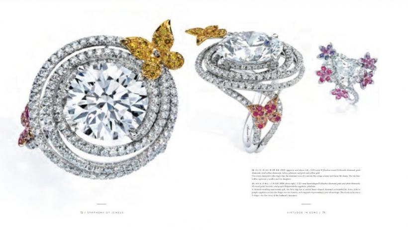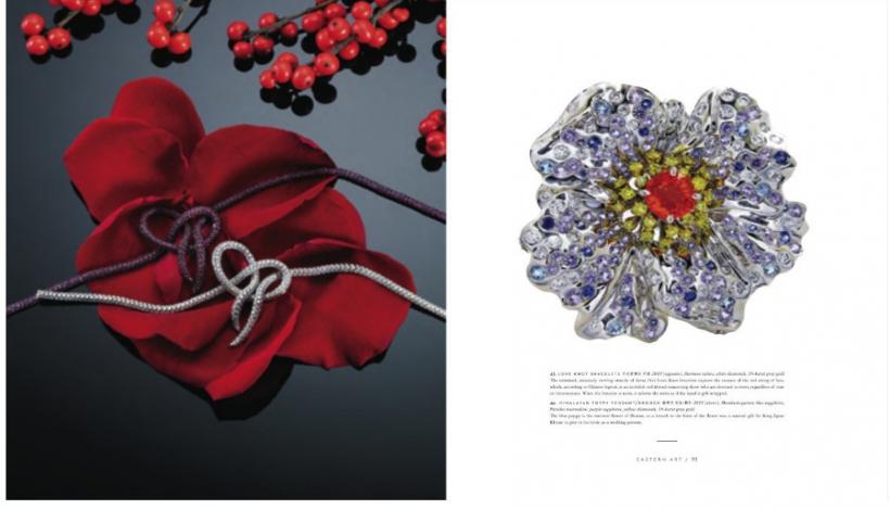 The pièces de résistance of the book are the pieces themselves, many of them exquisitely photographed by master jewelry photographer David Behl. Some are as intricate as Chinese embroidery, others are as ethereal as butterflies, and still others are reinterpretations of works of music and art, from Beethoven’s Moonlight Sonata and Puccini’s Turandot to Monet’s Water Lilies and Van Gogh’s Irises.