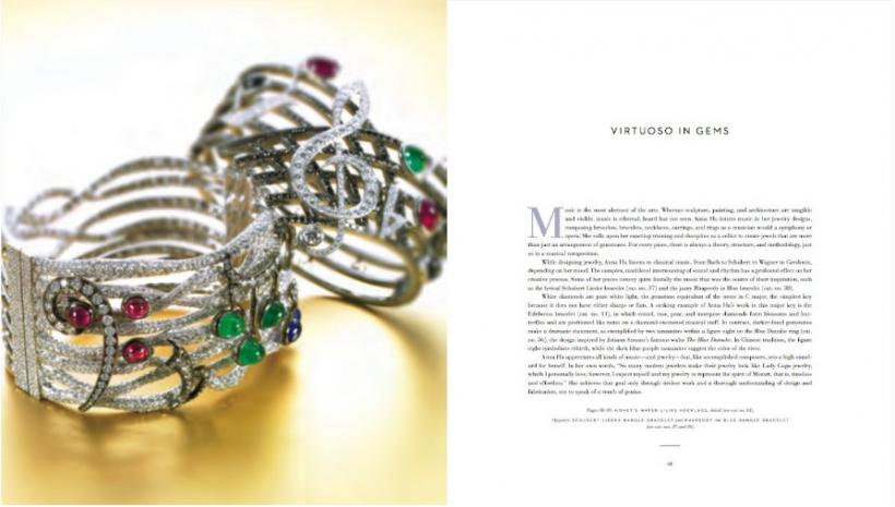 The texts address various aspects of Anna Hu’s work, including the relationship between her jewelry and fashion, the impact that her passionate study of the cello has had on her jewelry design, and the remarkable gemstones that inspired her to make some of her most virtuosic pieces.