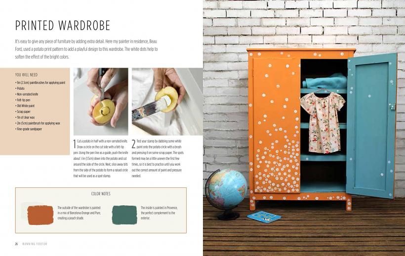 Discover three chapters, all packed full of inspiration and advice: Furniture and Lighting, Fabric and Other Surfaces, and Walls and Floors. Forty step-by-step projects will guide you through the methods for using paint in ways you never thought possible, with clear instructions accompanying each picture, and helpful tips along the way. Learn about printing, stencilling, gilding, transferring images and dyeing fabric, as well as all the secrets of making the most of Annie’s own Chalk Paint® range. Find out, too, how to combine colours for different styles, and how to tap into your creativity by painting patterns freehand.