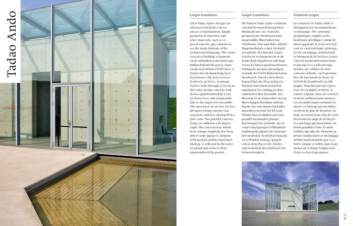 How does water affect a space? Can the design of walls, floors and ceilings actively enhance the experience of water? In this volume, remarkable buildings from the sector of living by or on water bodies, public buildings, swimming baths and pools, as well as single objects and furniture are presented.