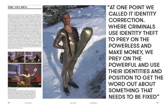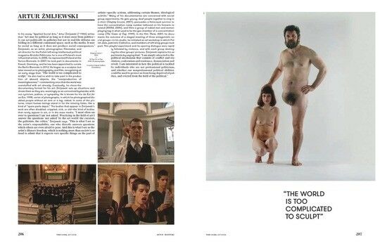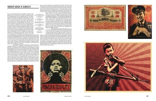 Contributors include established artists such as Ai Weiwei, Elmgreen & Dragset, Fernando Bryce, Gregor Schneider, Hank Willis Thomas, Jennifer Karady, Jota Castro, Marina Abramovic, Maurizio Cattelan, Milica Tomic, Paul McCarthy, Santiago Sierra, William Kentridge, and Zhang Huan as well as newer talent such as Aram Bartholl, Brad Downey, JR, Shepard Fairey, Swoon, Voina Group, YesMen, and Ztohoven