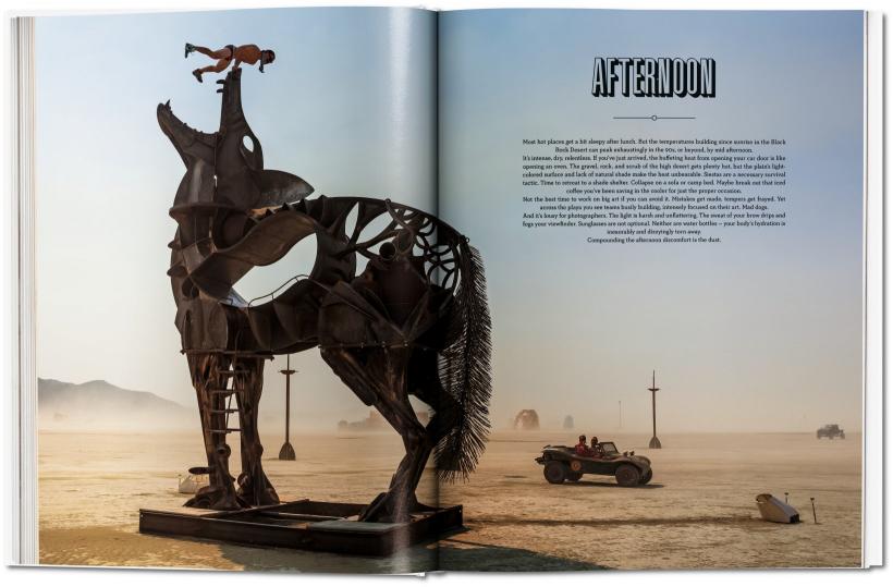 Here, writer and photographer NK Guy presents 16 years of Burning Man art. His dazzling images record these participatory, collective, intrinsically ephemeral installations and happenings in the desert, which exist for no clearer purpose than because someone wanted to express something. The result is testimony to a realm far beyond the ego, commerce, and power play of mainstream cultural output: It is one of the purest, uninhibited, expressive centers of our time.