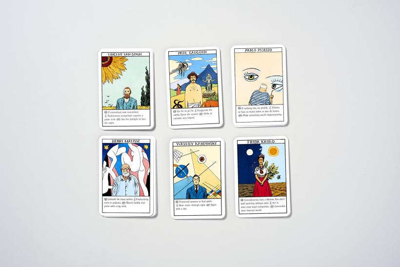 Simply select an artist's card from the pack, select the oracles’ advice on life, work or inspiration and any obstacle becomes surmountable.