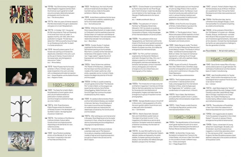 1916b Работы Пола Стрэнда публикуются на страницах издаваемого Альфредом Стиглицем журнала «Камера Ворк»: сложные отношения между фотографией и другими искусствами образуют основу для формирования американского авангарда.