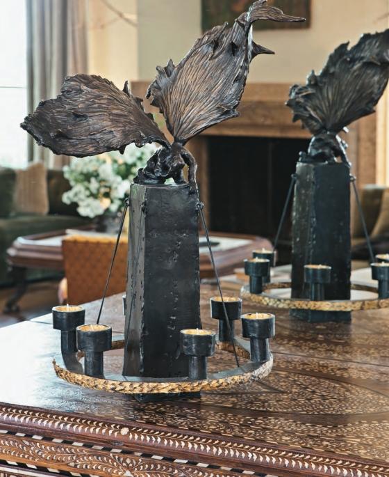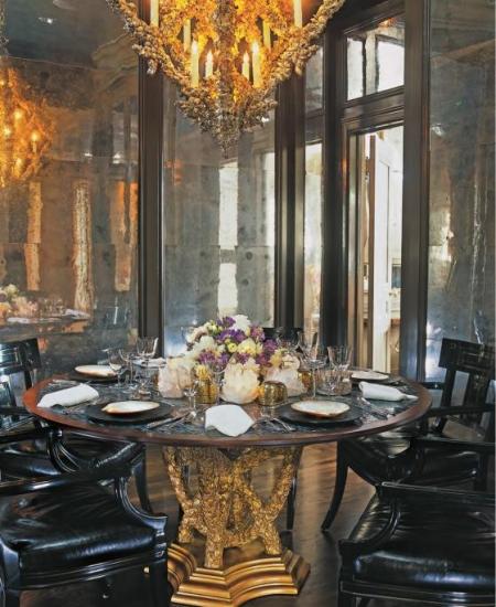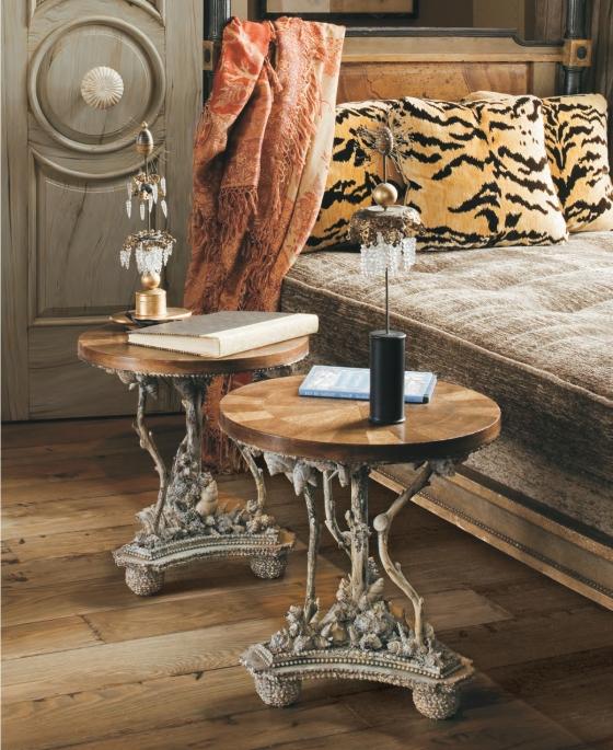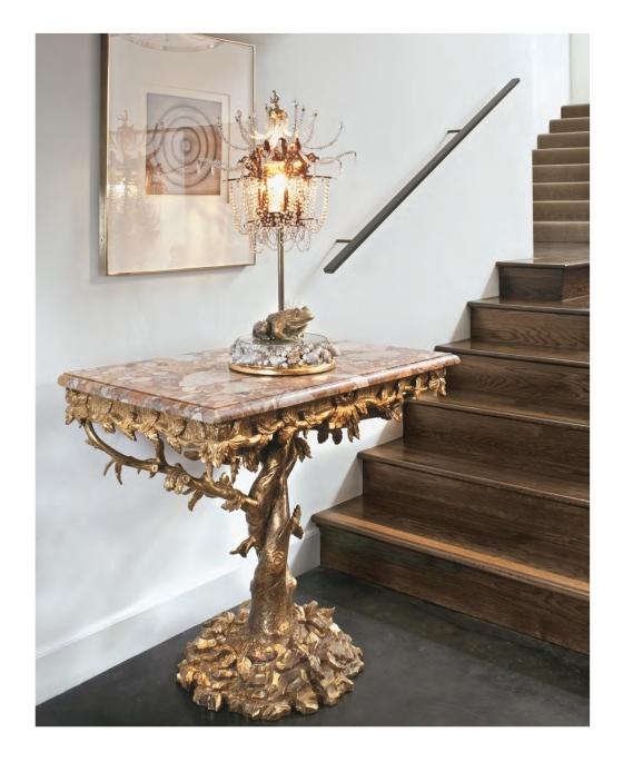 Andrew Fisher and Jeffry Weisman delight in the unexpected. They revel in beautiful contradictions to create interiors that blend the exotic and the traditional and refresh classic ideas with handmade, whimsical details. Both designers contribute an essential element to every project: Andrew Fisher injects opulence and glamour, hand-decorating chandeliers with shells, crafting side tables with delicate branchlike bases, and choosing ornate accent materials like tortoise, gold leaf, and peacock feathers; Jeffry Weisman contributes restrained architecture, calm visual pauses, and impeccable interior finishes.