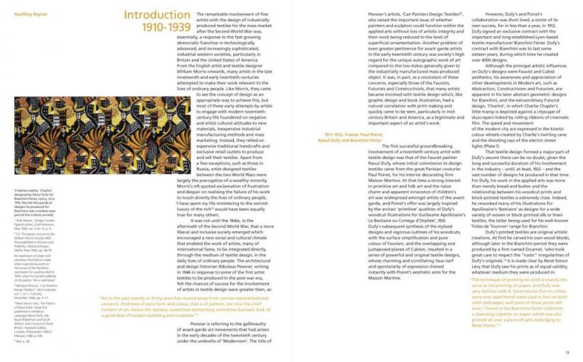 The development of textiles as an art form between 1940 and 1976, and the extent of collaboration between artists and textile manufacturers at this time, is unrivalled in modern art history. Raoul Dufy was the first twentieth-century artist to become seriously and successfully involved in producing textile designs. His work influenced and encouraged many other artists and textile companies in Britain, on the Continent and in America. After the war this movement really flowered with the involvement of leading artists of the day: Picasso, Matisse, Moore, Nicholson, Warhol, Steinberg, to name a few...