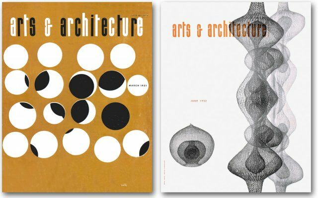 From the end of World War II until the mid-1960s, exciting things were happening in American architecture: emerging talents were focusing on innovative projects that integrated low-cost materials and modern design. This trend was most notably embodied in the famous Case Study House Program, which was championed by the era’s leading American journal, Arts & Architecture. Focusing not only on architecture but also design, art, music, politics, and social issues, A&A was an ambitious and groundbreaking publication, largely thanks to the inspiration of John Entenza, who ran the magazine for over two decades until David Travers became publisher in 1962. The era’s greatest architects were featured in A&A, including Neutra, Schindler, Saarinen, Ellwood, Lautner, Eames, and Koenig; and two of today’s most wildly successful architects, Frank Gehry and Richard Meier, had their debuts in its pages. A&A was instrumental in putting American architecture - and in particular California Modernism - on the map. Other key contributors to the magazine include photographers Julius Shulman and Ezra Stoller, writers Esther McCoy and Peter Yates, and cover designers Herbert Matter and Alvin Lustig, among many luminaries of modernism.