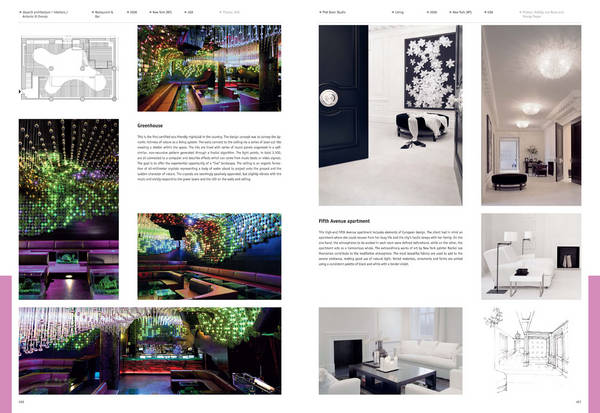 Выбор ультрасовременных проектов от частных зданий до магазинов, курортов, ресторанов и офисов обеспечивает глобальное видение предметной области, ярко отражая международные тенденции, региональные традиции и индивидуальные стили.
