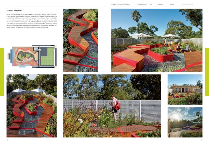 Все эти проекты находятся в диапазоне, включающем как обширные природные территории и живописные наружные и внутренние дворы, так и красочные озелененные фасады и крыши, а также новаторские произведения под открытым небом, авторы которых полностью или почти полностью обошлись без использования каких-либо растений.