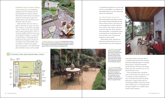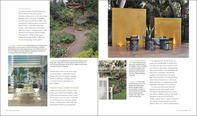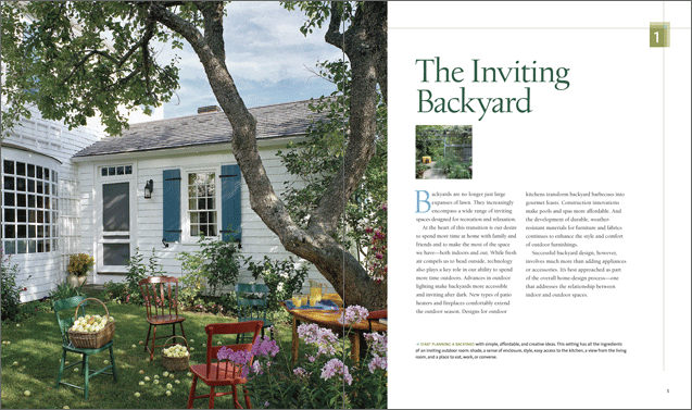 Backyard Idea Book showcases hundreds of creative, practical ideas for planning and decorating inviting yet functional backyard spaces. From porches, patios, and decks to pools and retreats to kids spaces and storage, this book is filled with fresh ideas to help you create a beautiful backyard that reflects and enhances your lifestyle.