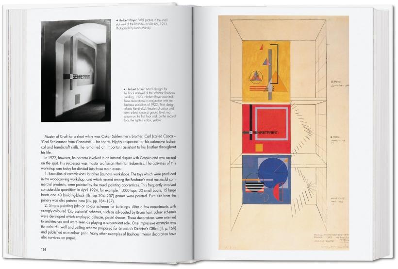 This best-selling reference work is made in collaboration with the Bauhaus-Archiv/Museum für Gestaltung in Berlin, the world’s largest collection on the history of the Bauhaus. Some 575 illustrations including architectural plans, studies, photographs, sketches, and models record not only the realized works but also the leading principles and personalities of this idealistic creative community through its three successive locations in Weimar, Dessau, and Berlin. From informal shots of group gymnastics to drawings guided by Paul Klee, from extensive architectural plans to an infinitely sleek ashtray by Marianne Brandt, the collection brims with the colors, materials, and geometries that made up the Bauhaus vision of a “total” work of art.