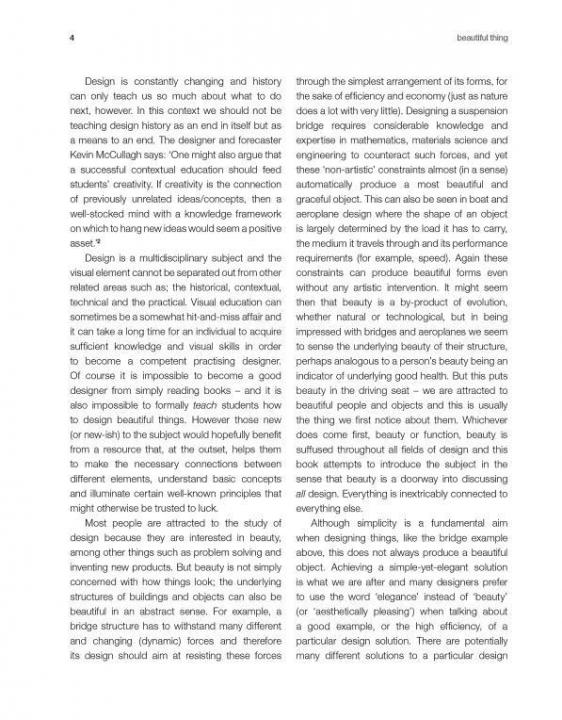 Beautiful Thing presents a broad introduction to design theory and practice. Historical, contextual, philosophical, technical, visual, and practical approaches to Design are often presented separately. But each approach impacts on others and together they are critical to a rounded understanding of design. Beautiful Thing presents a clear synthesis of these approaches, explaining all the basic concepts and allowing the reader to connect the different elements of Design.