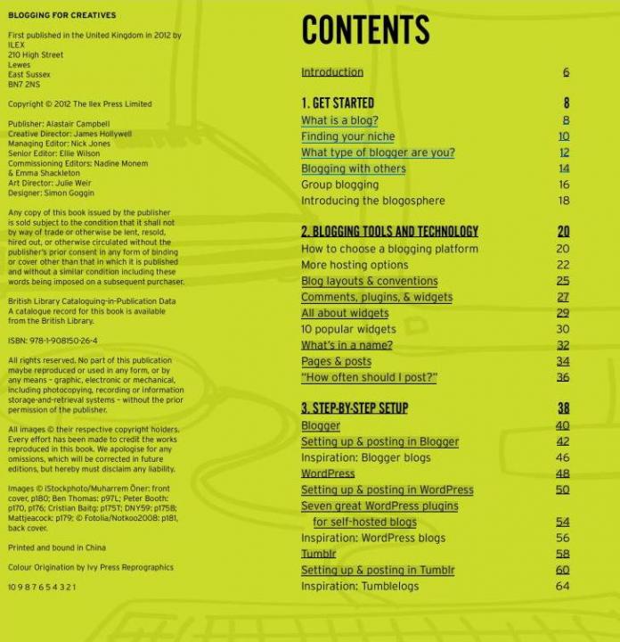 Blogging for Creatives is the first approachable, non-techie guide to the blogosphere, complete with hundreds of tips, tricks and motivational stories from artistic bloggers who have started from scratch. It covers everything creatives need to know about how to design a beautiful, interesting blog that people will want to return to again and again such as how to design, publish and host a blog, as well as keeping it fresh, staying motivated and forging connections with others in the field. Professional advice is highly illustrated with examples of successful blogs, broken down into succinct types that work, helping the reader to identify and develop the style of blog they want.