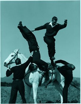 That laughter can be found in a picture of a girl wearing a dress by Yohji Yamamoto that's so big she can't even walk in it or a boy wearing twigs as a tunic at Karl Lagerfeld's chateau in Brittany or the Duchess of Devonshire feeding her pet chickens in a Jean Patou couture evening dress from the 1940s. In this crazy world of ours, most things don't make sense any more, but the wonderful thing about taking pictures of people wearing or not wearing clothes is that maybe you won't solve all the world's problems but you'll at least be giving back a seed of imagination to our garden of lost innocence. And it's fashion that can create a big fantasy life for all those who enter.