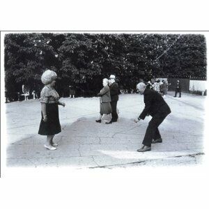 This new book contains a never-before-published series of work from the early 1980s: Mikhailov photographed ''The Dancers'' in his hometown in Ukraine during a period when the former Soviet Union was a reality, before the appearance of Gorbachov and "perestroika". We observe the open-air dancing scene with great astonishment; seeing older and younger people enjoy themselves in a way that might be contradictory to the images we might have about everyday life in the old Soviet Union. These cheerful images remind us how little women and men need to have a good time.