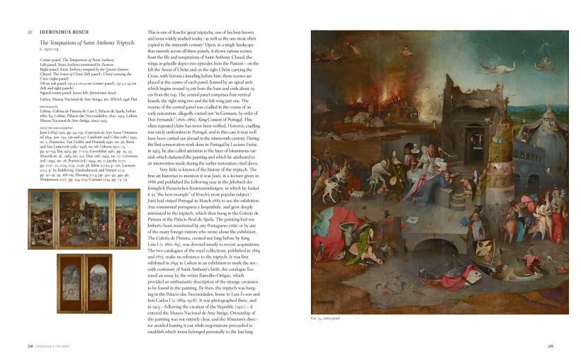 Finally, there is a ‘conversation’ between Reindert Falkenburg and The Garden of Earthly Delights triptych, and a reflection by Fernando Checa on the reception of Bosch at the Habsburg court in Flanders and in Spain in the 16th century. The catalogue entries for the paintings belonging to the Prado collection discuss the findings of recent technical research carried out specifically for the exhibition, which has shed new light on these works.
