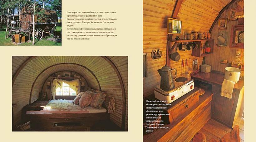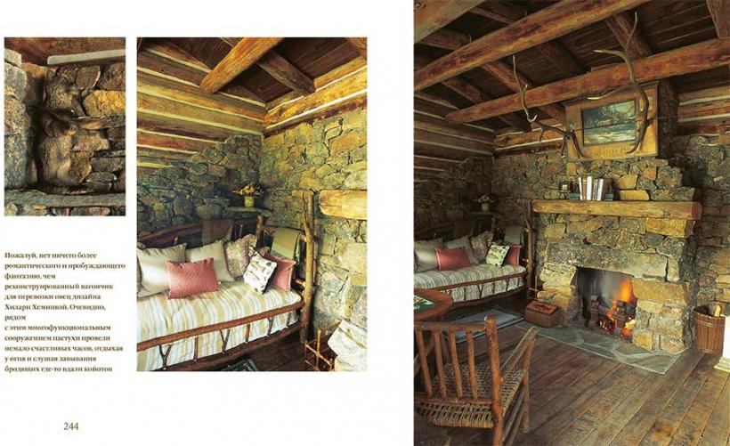 Отображая на фотографиях детали высокого уровня мастерства каменной кладки и бревенчатых конструкций, эти дома гармонично сочетают антикварную и современную мебель. Элементы скандинавского стиля и стиля вестернов, легко читающиеся в дизайне мебели и оформлении интерьеров, выходят на сцену во многих комнатах.