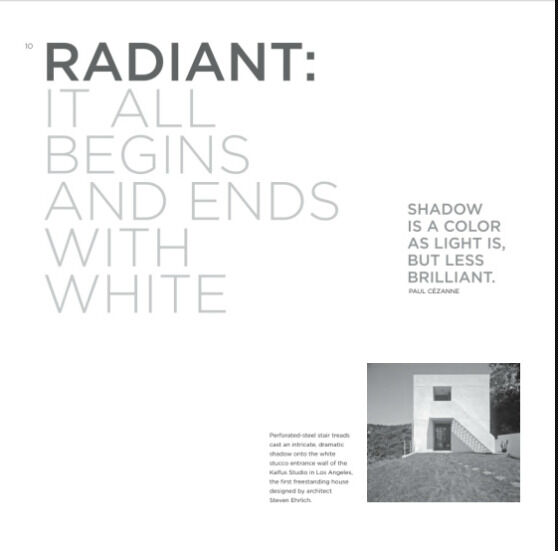 White is everywhere, from sculptures and art installations to interior and furniture designs to fields of snow and mythical animals. In its countless tones - eggshell, ballerina, off-white, edelweiss, and so many more - white elicits a range of emotions, depending on the viewer, the design, the culture, the use.