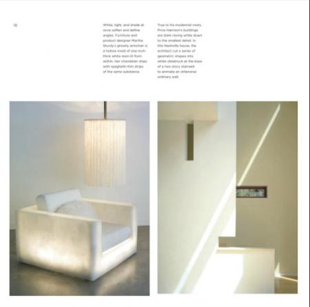 In more than 250 photographs, O’Keeffe showcases work, both recent and historic, from around the world - France, Japan, Spain, England, Mexico, Canada, South Africa - and across the United States. Designers and artists include Jonathan Adler, Orlando Diaz-Azcuy, Andy Goldsworthy, Kelly Hoppen, Hugh Newell Jacobsen, Richard Meier, Benjamin Noriega-Ortiz, Andrée Putman, Robert Ryman, Philippe Starck, Kelly Wearstler, and Vicente Wolf.
