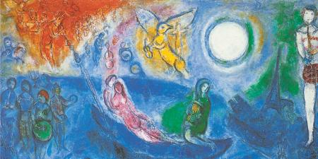 Chagall’s paintings, steeped in mythology and mysticism, portray colorful dreams and tales that are deeply rooted in his Russian Jewish origins. The memories and yearning they evoke recall his native Vitebsk, and the great events that mark the life of ordinary people: birth, love, marriage and death. They tell of a world full of everyday miracles—in the room of lovers, on the streets of Vitebsk, beneath the Eiffel Tower in Paris.