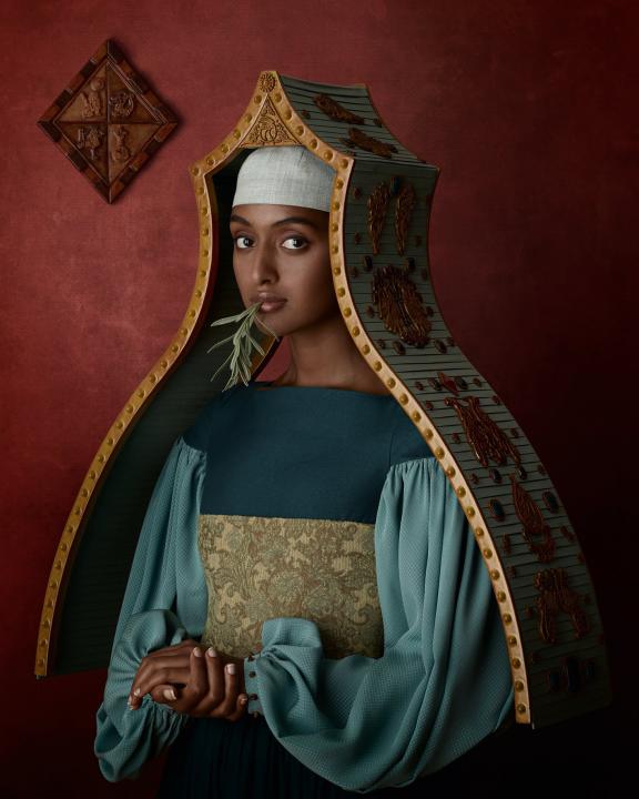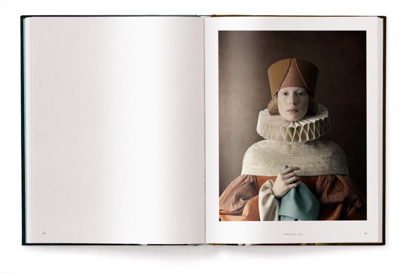 Since the beginning of his career, Swiss-Italian photographer Christian Tagliavini has been fascinated by mise-en-scène photography and Renaissance portraiture. Referencing the painting style of the Old Masters, his carefully-staged photo portraits exude the dignity and composure of 15th and 16th-century courtly culture, meticulously replicating their dimensions, framing, and chiaroscuro effects. After his breakthrough with the series 1503, Tagliavini returns to the art historical theme with his new series, 1406, published for the first time in this book. In his process, however, Tagliavini takes a step further back from the Renaissance artist ideal, presenting himself instead as a “photographic craftsman” who designs each of his costumes and props by hand with a small team.