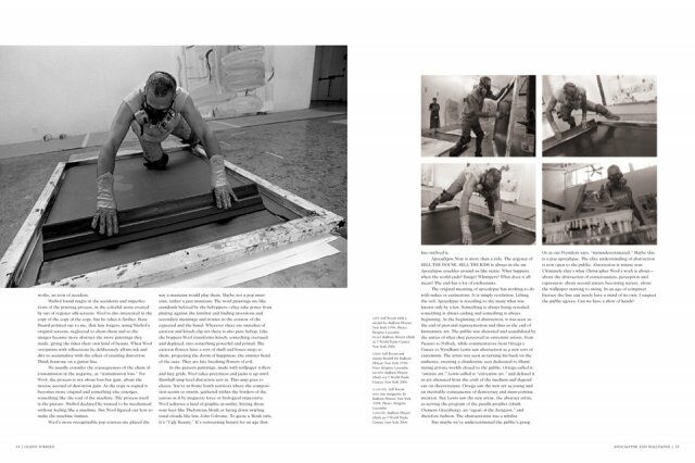 Exploring Wool’s work in close to 500 pages, this monograph is exhaustive in scope and depth. All work phases are covered in large-scale reproductions and accompanied by production Polaroids and installation photos by Wool himself. Editor Hans Werner Holzwarth has previously collaborated on several catalogs and artist’s books with Wool. Essays and analyses by Glenn O’Brien, Jim Lewis, Ann Goldstein, Anne Pontégnie, Richard Hell, and Eric Banks make this book a great read as well as a definitive study of the story so far.