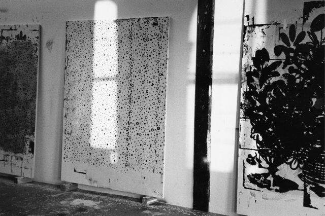 Christopher Wool became known in the mid-1980s through allover paintings produced with rubber rollers commonly used to simulate decorative wallpaper patterns on walls. By 1988 he had hit stride with his dry, dead-pan word paintings (“Trbl,” “Riot,” “Sell the House, Sell the Car, Sell the Kids”), while continuing to explore the possibilities of pattern painting. Since the 1990s, he has been developing the painterly qualities of his work, using a mostly black-and-white palette, starting from abstract lines drawn with a spray gun or layered stock images, overpainting silkscreens on linen, wiping out images, with a widening variety of media, a process that can involve photography, silkscreen, and, in the new millennium, also the computer.