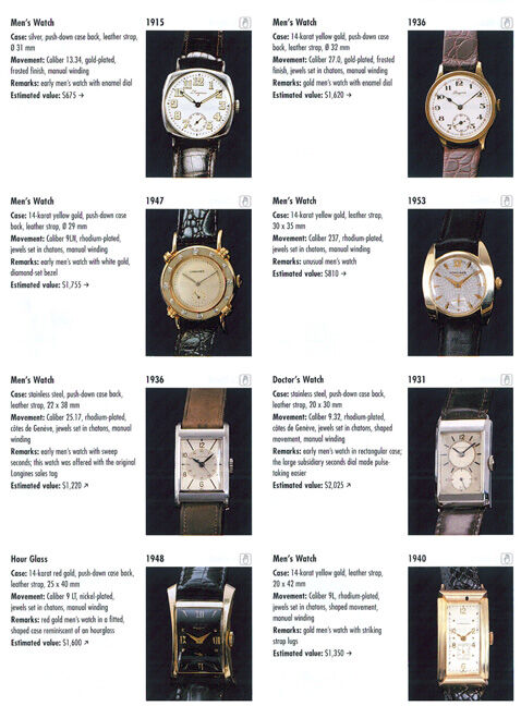 Featured Manufacturers: Angelus, Audemars Piguet, Baume & Mercier, Breitling, Cartier, Certina, Chronoswiss, Cyma, Doxa, Eberhard & Co., Enicar, Eterna, Excelsior Park, Fortis, Gigandet, Girard-Perregaux, Glashütte, Hamilton, Hanhart, Heuer, IWC, Jaeger-LeCoultre, Junghans, A. Lange & Söhne, LeCoultre, Lémania, Leonidas, Longines, Mido, Movado, Ulysse Nardin, Nivada, Officine Panerai, Patek Philippe, Piaget, Pierce, Record, Rolex, Tissot, Tudor, Universal Gené, Vacheron Constantin, Vulcain, Wakmann, Zenith