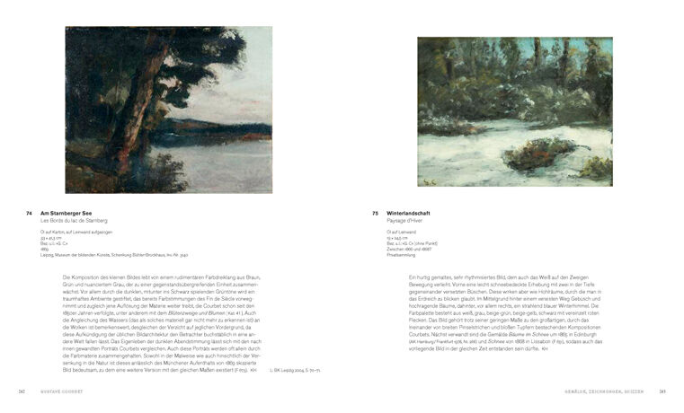 Gustave Courbet (1819–1877) is the preeminent representative of Realism and the spearhead of a style of painting committed to socially relevant issues. His lifelike portraits defy the artistic convention of idealization. The painter had another side, however: in his portraits, landscapes, drawings, and still lifes, he depicted a contemplative, meditative, inward-looking world, which stood in stark contrast to the fast-paced industrialization of the period. This publication introduces this “other” Courbet, one who, inspired by German Romanticism, succeeded in creating the vision of poetic modern art, as it was later refined not only by Cézanne and Picasso, but also by the Symbolists and Surrealists. His immersion into the depths of a personality, into the remoteness of pristine nature, as well as his thematization and dissolution of matter are reasons why many contemporary artists still make reference to his work.