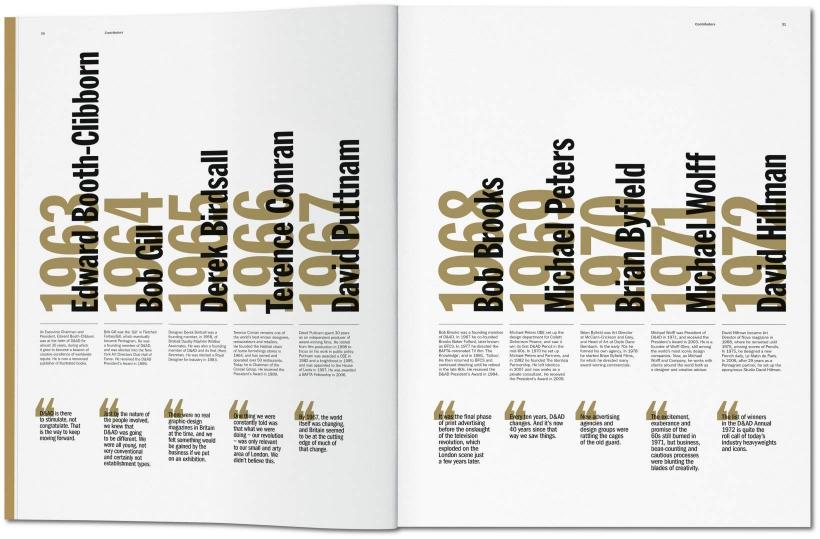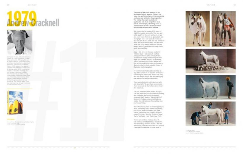 Featuring the latest D&AD award-winning work in the fields of:Art Direction, Book Design, Branding, Digital Advertising, Digital Design, Direct, Film Advertising Crafts, Graphic Design, Illustration, Integrated & Earned Media, Magazine & Newspaper Design, Mobile Marketing, Music Videos, Outdoor Advertising, Packaging Design, Photography, Press Advertising, Product Design, Radio Advertising, Spatial Design, TV & Cinema Advertising, TV & Cinema Communications, Typography, Writing for Advertising and Writing for Design.