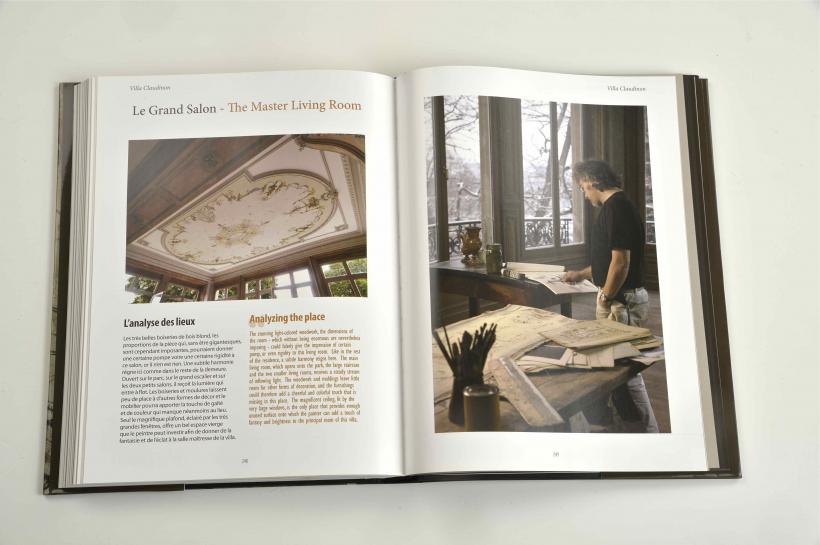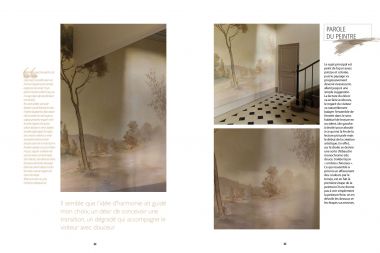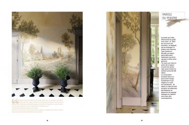 Hôtel particulier à Fontainebleau : décor mural de style XVIIIe, interprétation contemporaine des dessins de Léonard de Vinci, décor de treillage en trompe l’oeil. Villa Claudinon : plafond orné style Louis XV, grotesques, panneaux décoratifs d’inspiration 1900, décor de statues classiques. Château Lagallée : salon Directoire, salon à décor panoramique, bibliothèque baroque. Galerie.